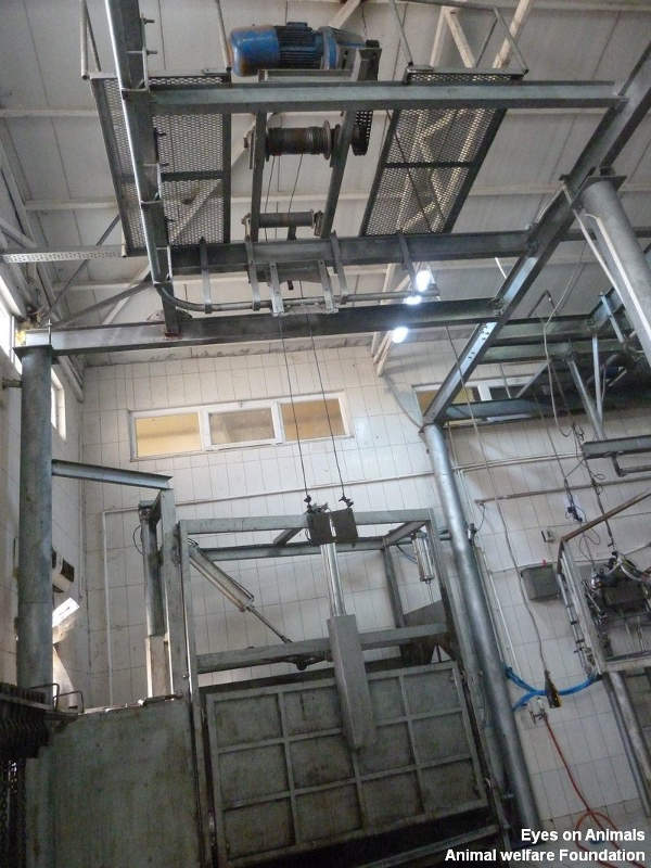 Another of our recommendation that they put into place is the installation of more light above the squeeze chute to take advantage of animals’ natural behaviour to move towards lit up areas. Using animals’ natural behaviour helps avoid that employees use force and cruel tools to make them move forward. It is only a small change, there is still lots to do to reduce suffering here…but we must encourage every positive step and thus thank the veterinarian at Yilkay for his engagement.