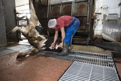 There are many people who claim to know best what products and actions are halal (allowed) or haram (forbidden) by Islam law. Unfortunately not all people, even ones that appear important, necessarily have the expertise or the experience of what is taking place on the ground to justify having such strong and self-assured opinions. Many of these strong opinions are simply personal interpretation or fuel for one’s own ego, and should not be mistaken to represent the truth or the essence of halal and haram. Dr. Katme, from the UK, is a major influencer and often guest speaker on Islamic opinions related to halal medicine and slaughter. He regularly speaks out very loudly against rendering animals unconscious before slaughtering them. He prefers that animals be alert and conscious and perfectly sentient during the process of restraint and throat-cutting. Asalet, our inspector in Turkey, has inspected more than 100 slaughterhouses in Islamic countries, as well as Halal certified abattoirs in Germany and the Netherlands and, on top of knowing the Koran and Hadiths well, also knows very well what happens to animals inside slaughterhouses. Overall there is animal suffering and focus on speed and profit, but by far the worst cases of suffering he has seen when animals are completely sentient during the entire restraint and bleed-out process. Asalet has written rebutals to the arguments Dr. Katme makes against stunning and this can all be read in English HERE.