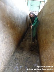 Bu konu üzerinde işletmenin özel ve resmi veteriner hekimiyle konuştuk. İnsanlara hayvanların nasıl idare edileceğini söyleyecek ve alanı temiz tutacak güce sahip olmadıkları konusunda ısrar ettiler. Görünüşe göre işletmenin birden fazla patronu var ve nadiren biraraya geliyorlar. Ek olarak, hayvan sahipleri hayvanları kesilirken görmek istiyorlar ve hayvanlarının ilk sırada kesilmesini istiyorlar. Bekleme alanındaki bağırışmaların nedeni de bu. Veteriner hekimlerin sessiz olmalarını ve hayvanların hareket ettikleri yerlerde dolaşmamalarını söylemelerine rağmen kimse onları dinlemiyor.
