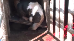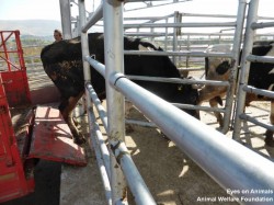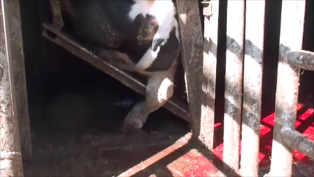 Bekleme alanından devirme kabinine giden ölüm yolunda atlamayı önleyici düzenek yoktu. Bu yüzden boğalar tekrar tekrar birbirinin üstüne ve önde bulunan bir ineğe atlamaya çalışıyorlardu. Bir inek, üzerindeki ağırlık sebebiyle ayağı kaydı ve zemine düştü.